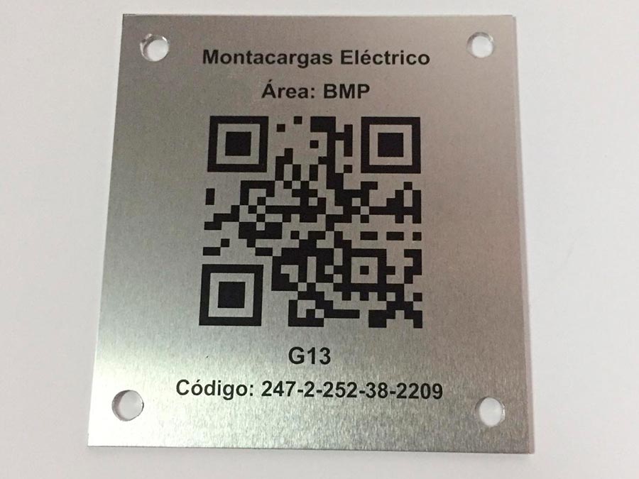 Grabamos Códigos de Barra, Texto, Número, Código Data Matrix, QR, Braille, Logo y mas, somos especialistas en placas de inventario, Tags y Placas de Identificación.